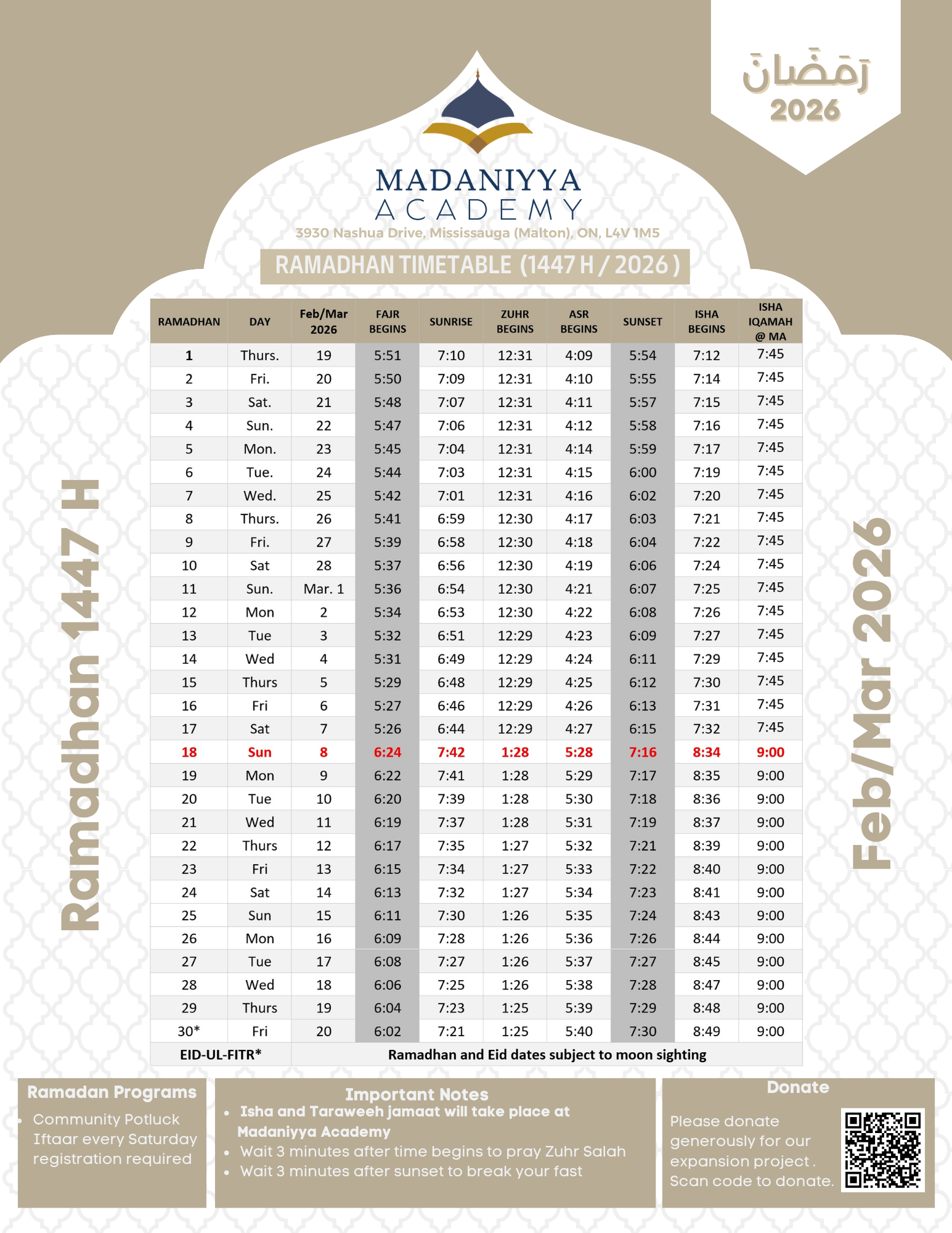 All 2025 tax receipts have been mailed or emailed. If you made a donation and have not received your receipt, please contact us at info@madaniyyaacademy.org
