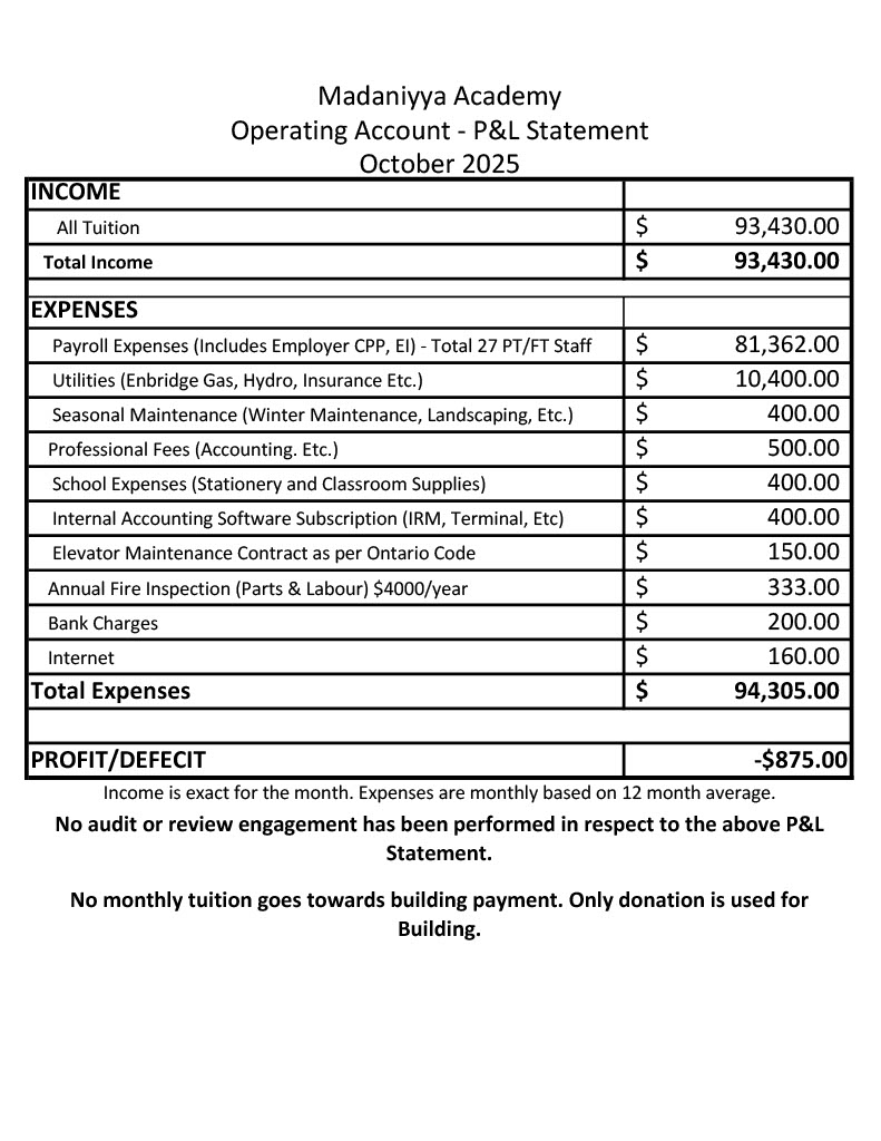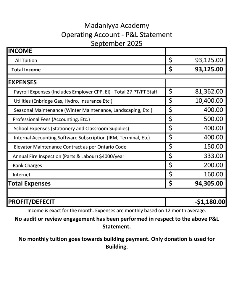 Madaniyya Academy P&L Statement